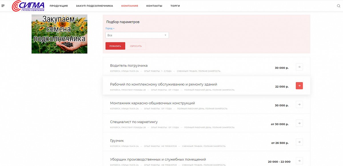 На сегодняшний день группа компаний «Сигма» — крупнейший в Уральском округе и республике Башкортостан агропромышленный комплекс. Основным видом деятельности холдинга является производство и продажа растительных масел и продуктов переработки на территории России, а также стран ближнего и дальнего зарубежья.