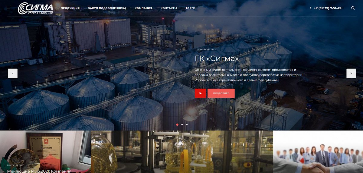 Сайт обогащен галереей производственных объектов, которая включает в себя как фото, так и видео материалы.