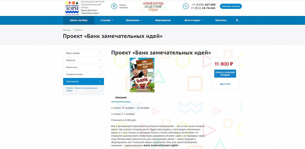 - добавление возможности оплаты путевок через сайт с помощью онлайн-эквайринга Сбера