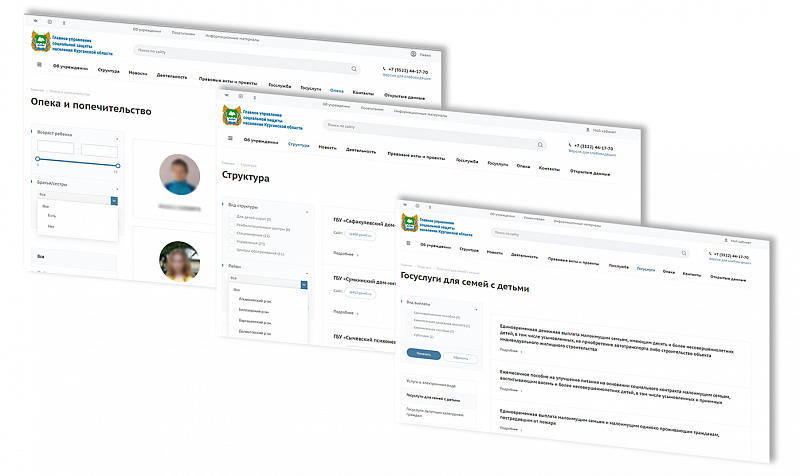 Все сайты Главного управления социальной защиты населения Курганской области получили единый интерфейс, расположение функциональных элементов. Администраторы этих учреждений получили мощные инструменты по управлению своими сайтами и смогут теперь размещать более информативные материалы.